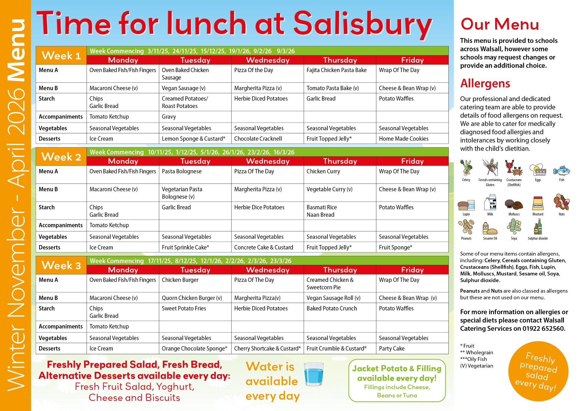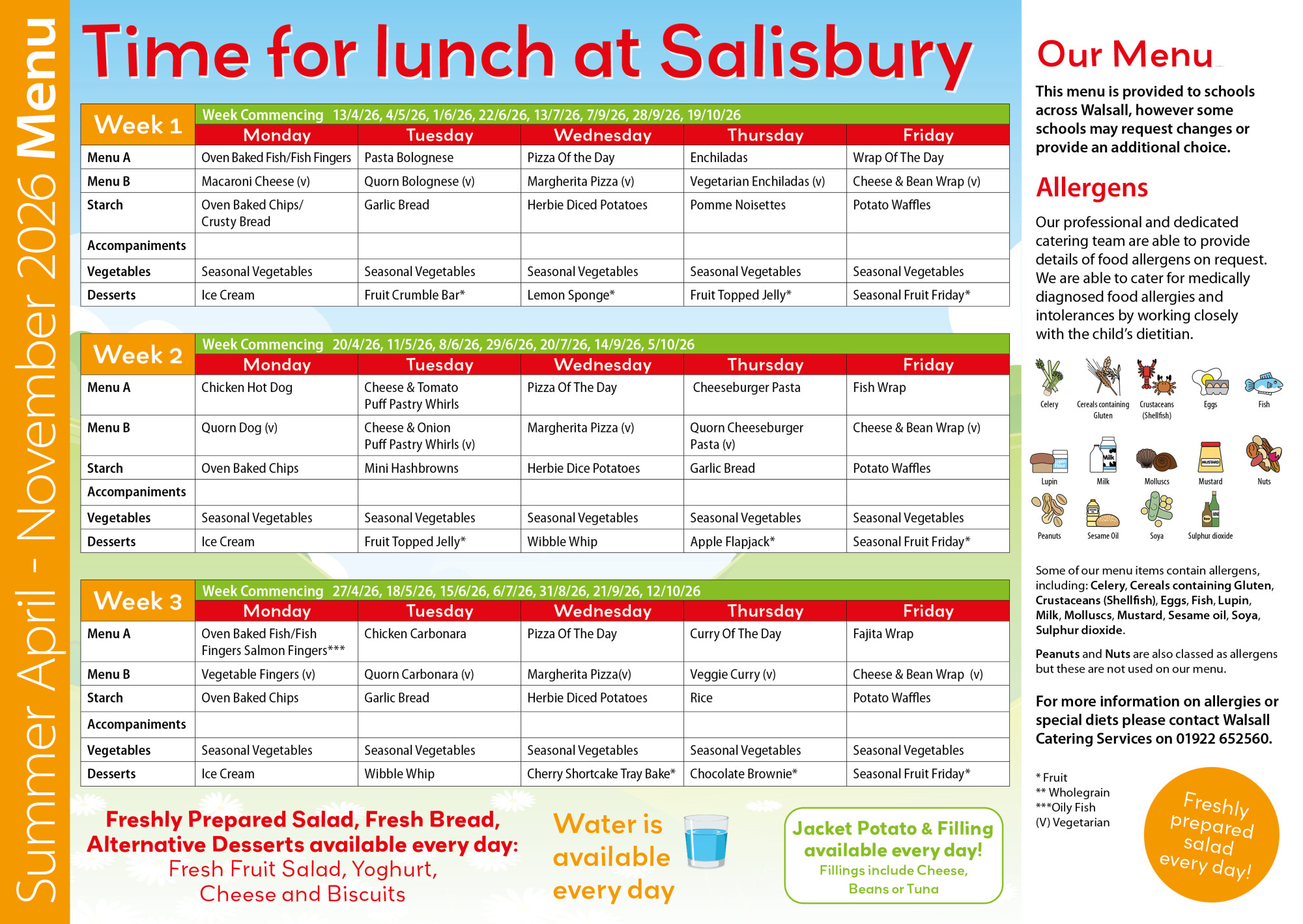 At Salisbury, we take our responsibility of catering for today’s children and young adults seriously. All of our dishes are prepared everyday using quality, fresh and seasonal ingredients that are responsibly sourced.